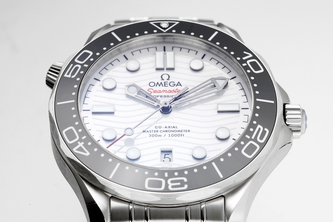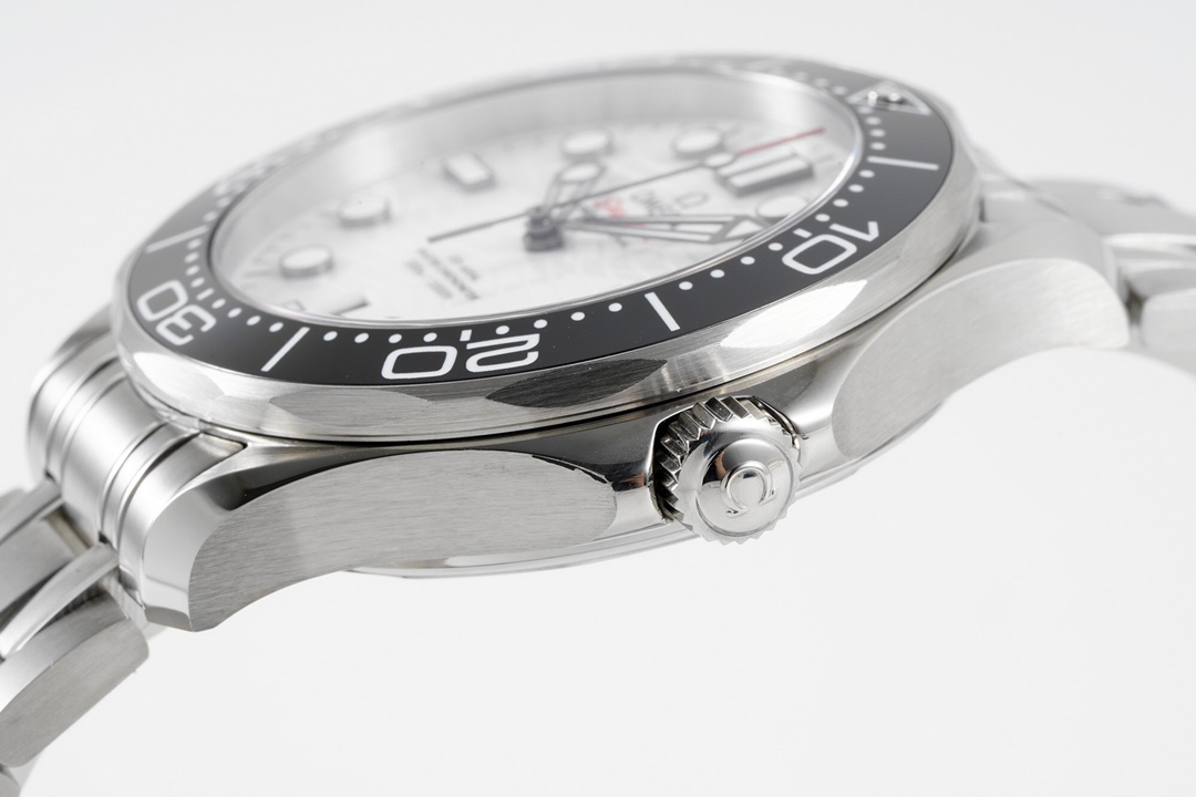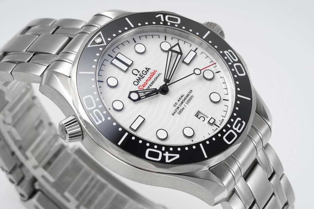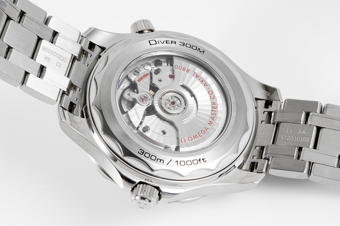 ZF 2022新作! 以全新OMEGA 8800一體機芯再造經典! 歐美茄海馬300米。 錶徑42MM,弧拱形雙面防反光藍寶石玻璃錶鏡,錶盤採用拋光陶瓷製成,並用雷射攜刻了波紋圖案,鏤空指針與浮雕刻度經過鍍銠處理,並且覆有SUPER-LumiNova夜光塗層。 錶圈同樣採用陶瓷材質,飾以珐琅潜水刻度。 搭載ZF獨家研發的8800同軸機芯,整體機芯經過日內瓦波紋的打磨裝潢,陶瓷滾珠軸承,雙向自動上鏈的系統,矽遊絲無卡度遊絲擺輪帶來15000高斯防磁。 動力儲存60個小時。 最重要的是ZF獨家配寘了第三代八爪魚同軸擒縱,(通過肉眼可看,黑色擺輪與正品一致為“旋渦型”.不同於市面其他版本)。 ZF出品,當之無愧封頂。