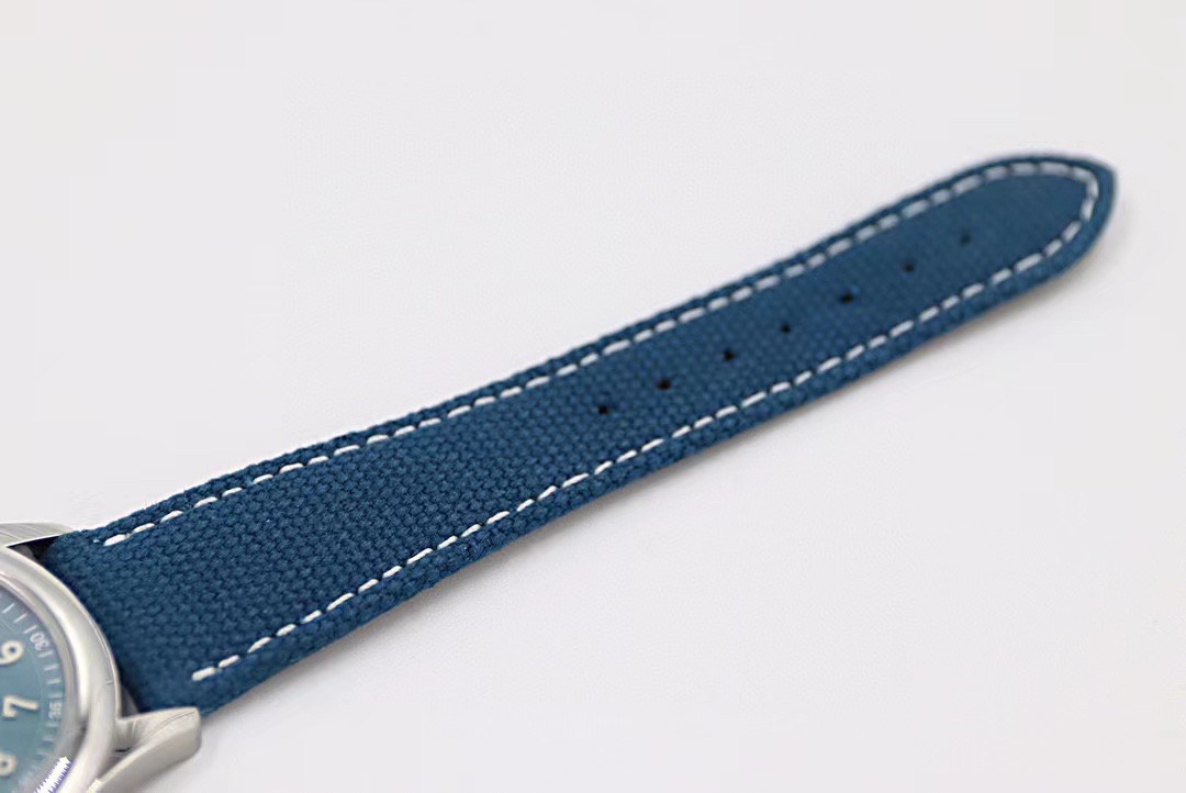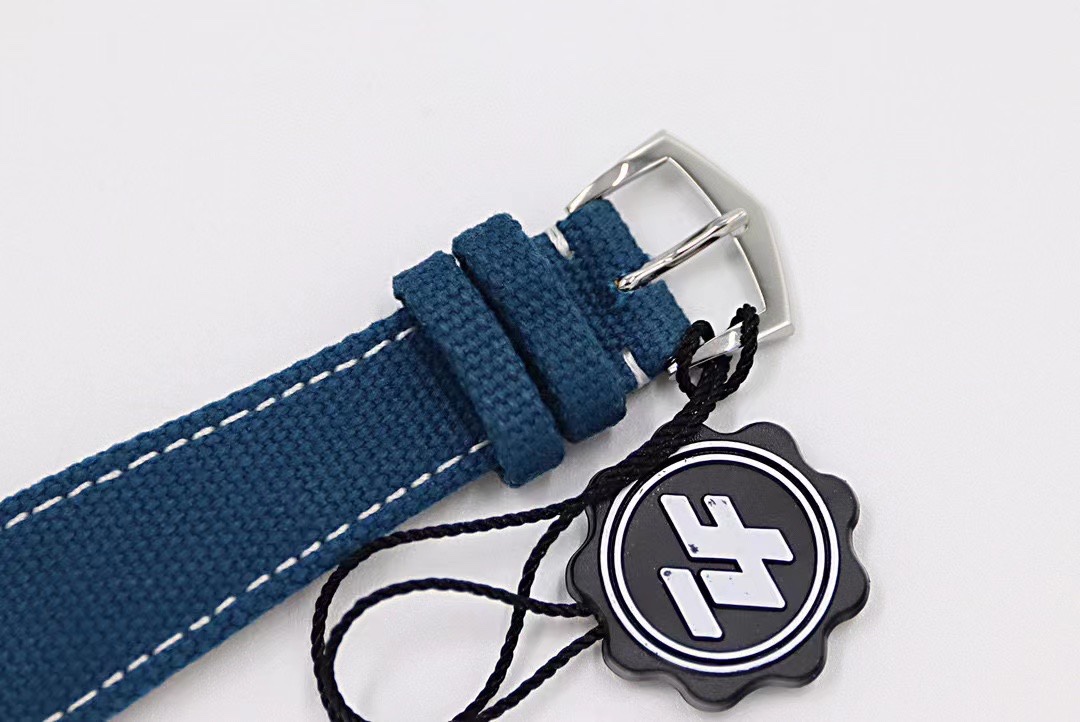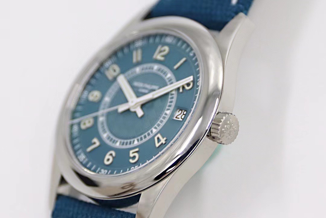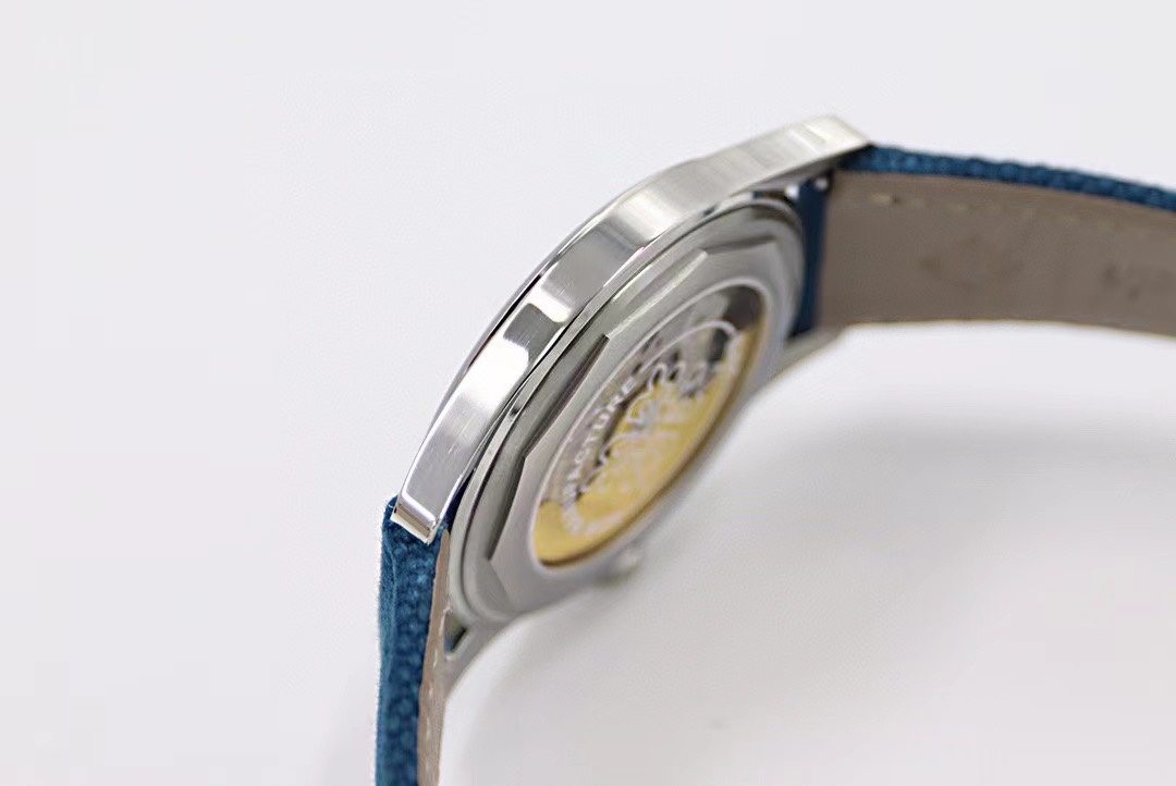灰藍色小牛皮錶帶,白色縫線裝潢,搭配PP經典針扣,設計與盤面色彩交相輝映!