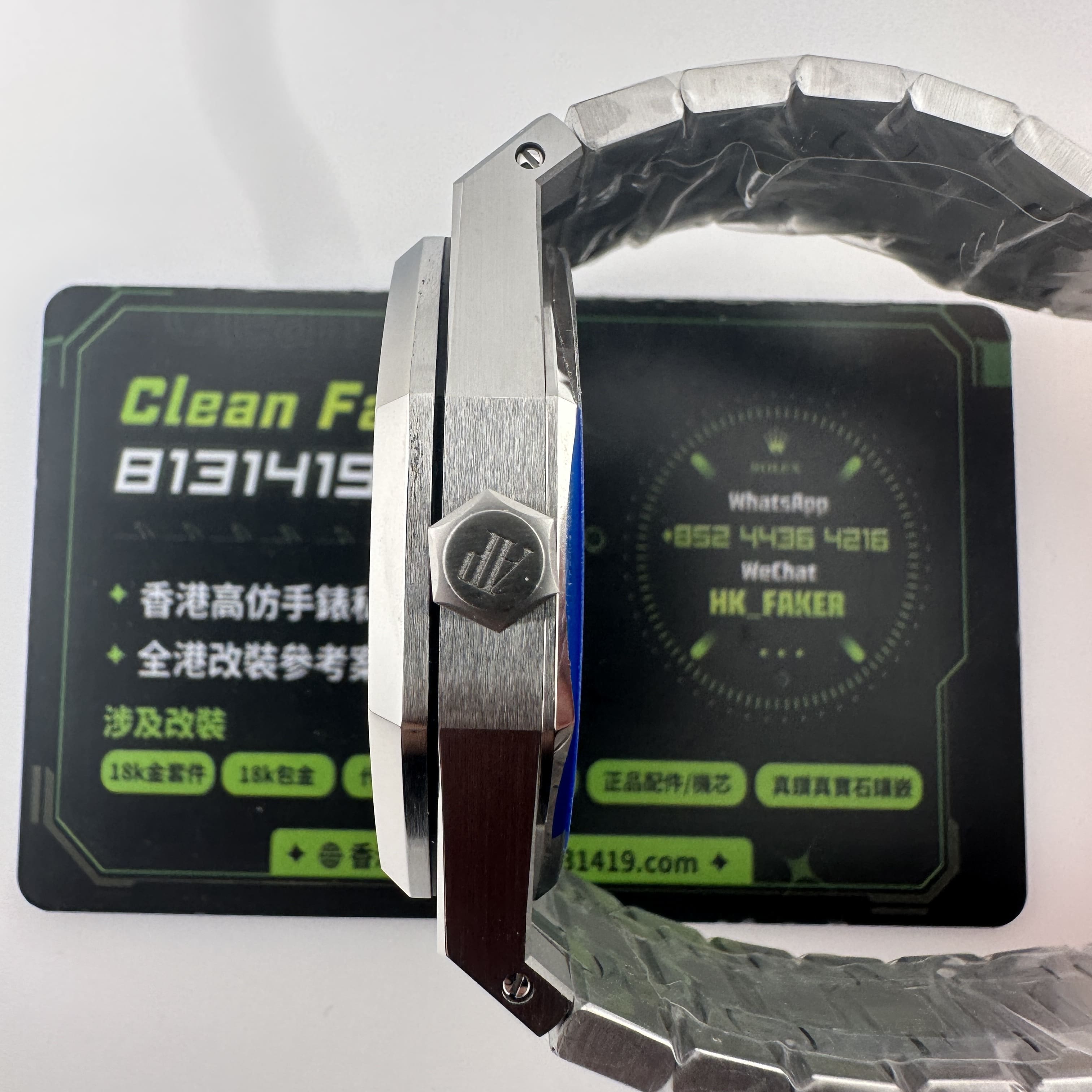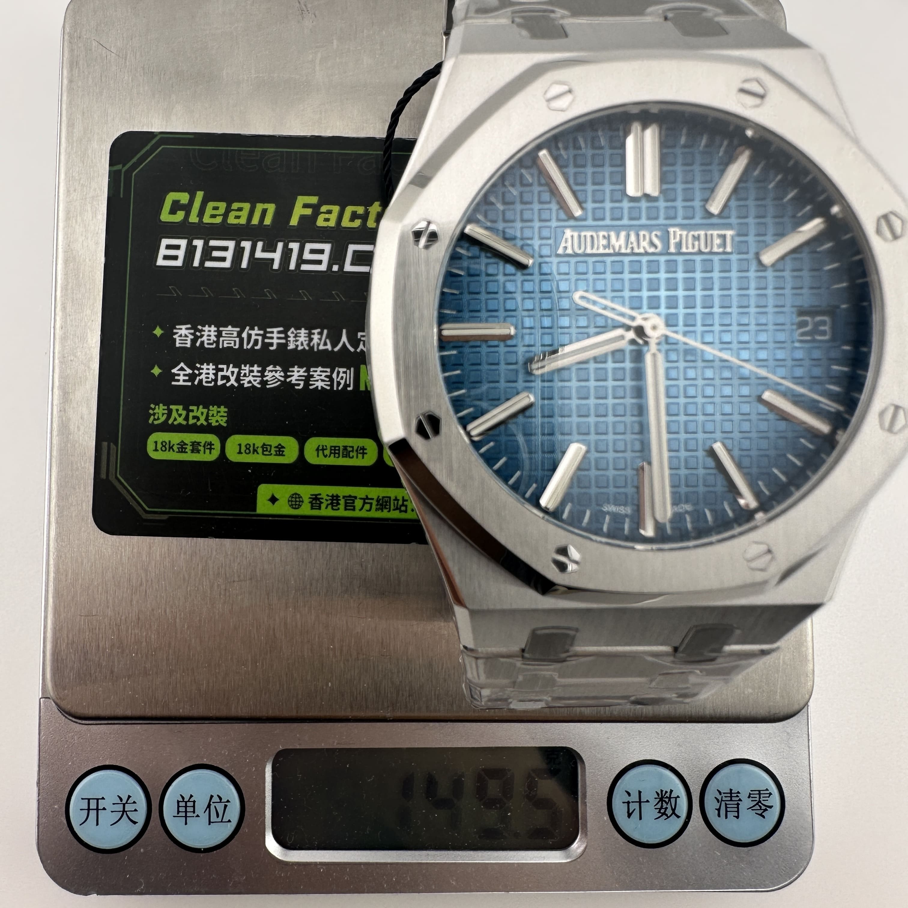 ZF廠15510白金藍盤錶款根據原版出品進行1:1復刻,由外觀錶殼製作到盤面內部細節處理均是做到了百分之95左右還原,而剩下的百分之5可以通過後期改裝升級提升,不過針對改裝升級部分高仿AP15510BC款式目前在市面上已經開始流通!感興趣的錶友咨詢相關客服.其次是ZF廠15510白金款錶盤結構與常規的15510盤面完全一致,並沒有其餘的變動.機芯搭載了一體4302機芯.